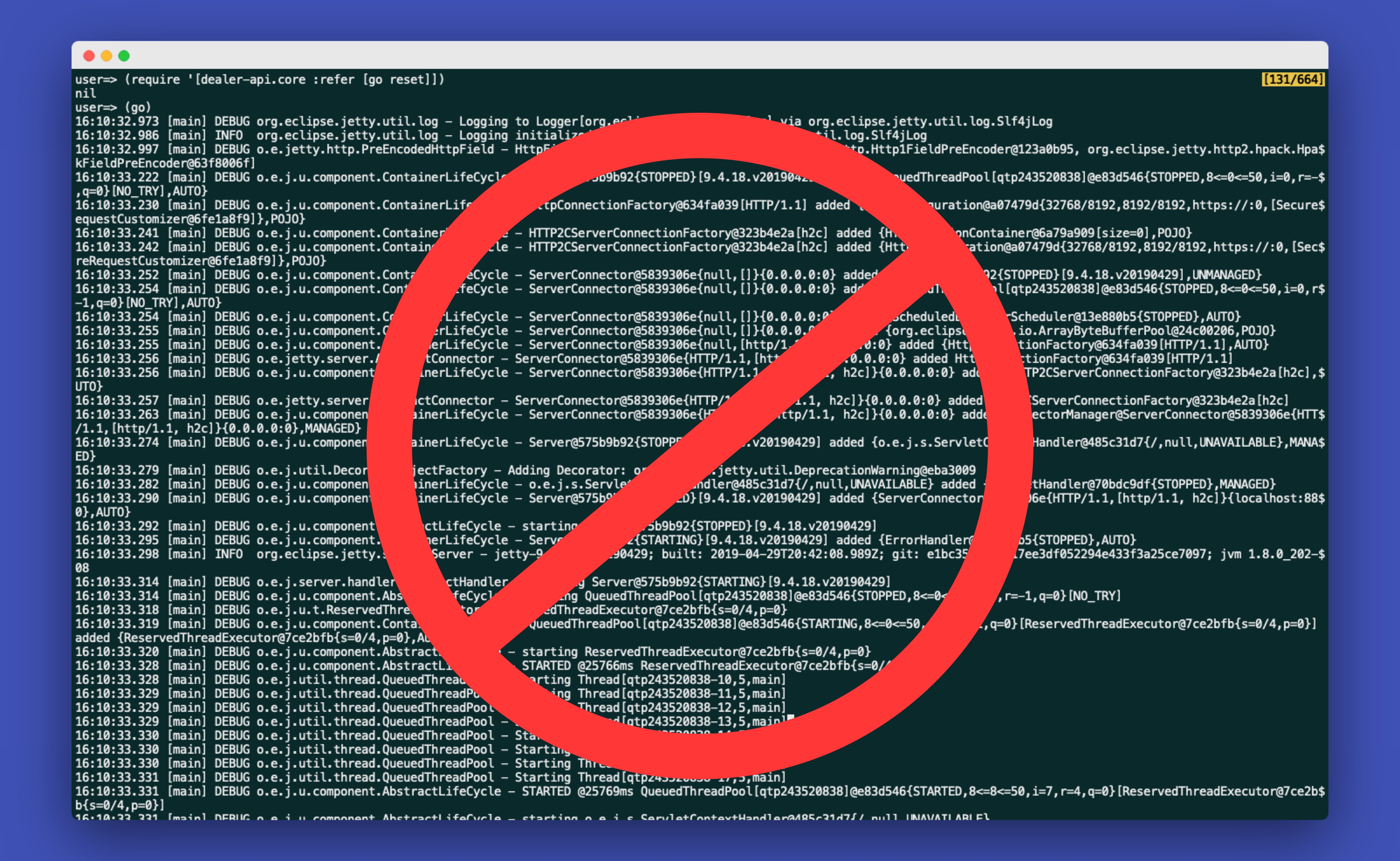 By default, the logging package makes a lot of noise. We can shut it down by using a logback config. I don’t understand much about how logback works and I usually end up copying the default. It’s configured with sensible defaults.