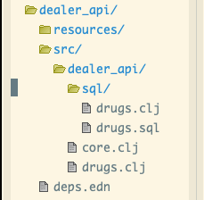 Setup src/dealer_api/sql/drugs.clj as follows: