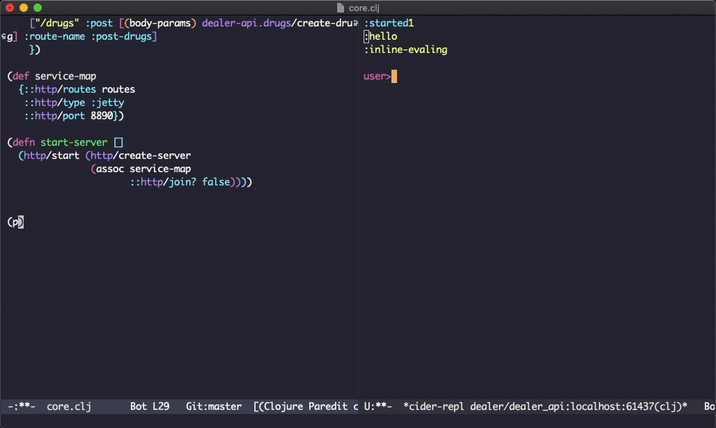 Next, you’d need to connect to this server from within your editor. There are multiple plugins available to serve as a REPL client.Emacs has Cider. VS Code has Calva. IntelliJ has Cursive. Vim users can go home. And all other editors will have a Cider equivalent.