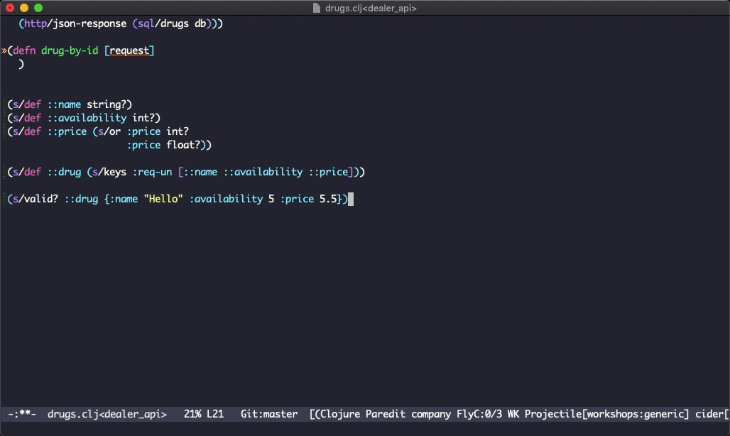 (s/def ::drug (s/keys :req-un [::name ::availability ::price]))