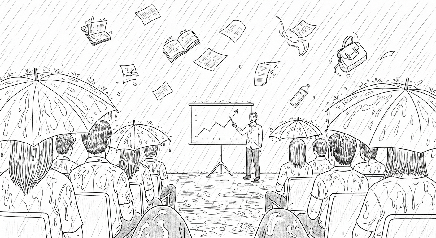 Illustration of plans being disturbed by the weather, generated by Google Imagen 4