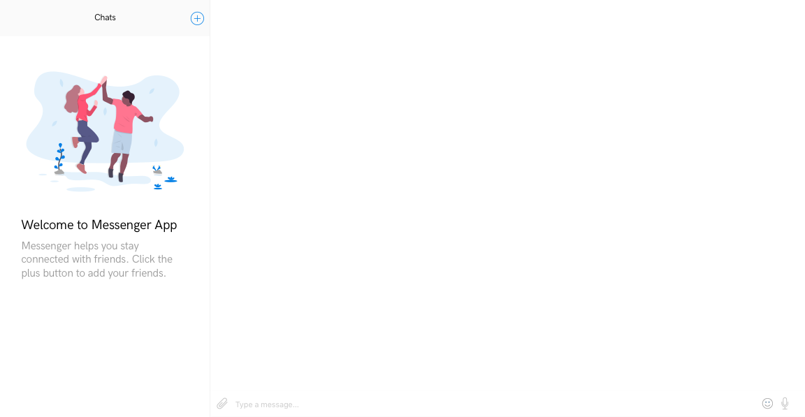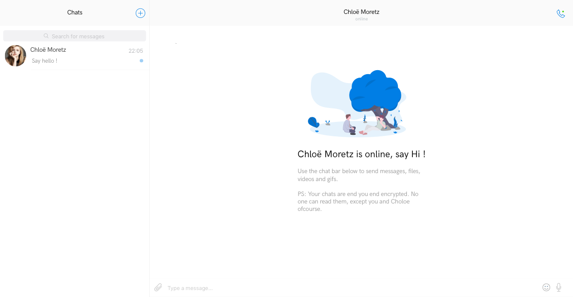But this is never the case when a user signs up. In the beginning, there is no data, so an empty contacts column and an empty chat window.